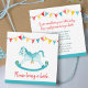 Pretty hand-painted rocking horse with stars and graphic bunting, baby shower book requesting cards in aqua teal green, yellow and red. Perfect for you to request books with a personal message inside as a sentimental gift for your new baby. Original whimsical hobby rocking horse watercolor painting and graphic design by Sarah Trett for www.mylittleeden.com on Zazzle.