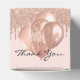 Elegant, classic, glamorous and girly for a Baby shower party favors. A trendy rose gold, blush background color. With the text: Baby Shower and Thank You written with a modern hand lettered style script. Decorated with rose gold faux glitter drips, paint dripping look and balloons. Personalize and add a name and a date.