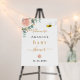 For a Baby Shower. A chic white background. Decorated with a rose gold and blush pink floral, flower (rose)and green watercolored eucalyptus leaves, sprigs, greenery, faux gold sprigs and a happy smiling bee. Personalize and add the name of the mom to be and a date. Black and golden letters.