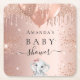 For a baby shower, celebrating a baby girl. A rose gold faux metallic looking background. Decorated with rose gold, pink faux glitter drips, paint dripping look,glitter drops, balloons and a cute little baby elephant girl. Personalize and add the name of the mom to-be