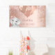 For an elegant Baby Shower. A rose gold faux metallic looking background. Decorated with rose gold, pink faux glitter drips, paint dripping look,glitter drops, balloons and a baby elephant. Personalize and add the name. Perfect both as a welcome banner or as party decor.