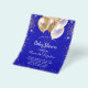 A royal blue background. Decorated with faux gold glitter, sparkles and balloons. Personalize and add a name and party details. The name is written with a hand lettered style script.