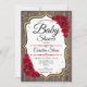 Baby Shower - Rustic Wood Red Gold Invitation