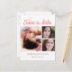 A pretty baby shower save the date photo collage postcard design, by red_dress, featuring a three pictures montage and the words "Save the date". A little bird adornes the cute font. Since the colors are pink and white, these girly baby shower photo postcards are perfect for a baby girl.