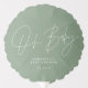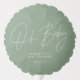 Baby shower script modern sage green elegant party decor balloon design. Ideal gender neutral design.