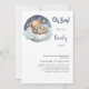 Baby shower teddy bear boy blue moon sky invitation