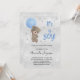 Baby shower teddy bear boy blue silver star invitation