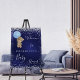 For a baby shower celebrating a baby boy. A navy blue background, with faux silver sparkles. The blue color is uneven. A teddy bear holding a blue balloon. Personalize and add the name of the mom to-be.