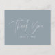 Baby shower script modern dusty blue elegant party thank you postcard design. Ideal gender neutral design.