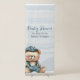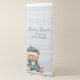 Are you planning a casual and cozy environment for your baby shower festivities? Consider this charming baby shower theme vertical retractable banner. Features soft blue, white, and tan colors for a relaxed and playful appeal. Bear Jean Baby design. Use the template to personalize.