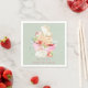 Baby Shower Watercolor Girl Fairy Cute Rabbit Paper Party Napkins features a cute modern and trendy watercolor baby girl fairy sleeping on a bowl of red strawberries with a rabbit sleeping beside the bowl on a green background with your personalized Baby Shower text below information. Simply edit the text in the text boxes provided.