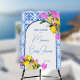 Blue Tiles Lemons and Bougainvillea elegant Mediterranean Greek Italian Santorini Mykonos themed baby shower welcome sign board.