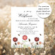 A white background. Decorated with painted wildflowers in muted, earth colors and butterflies. Personalize and add a name and party details.