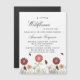 A white background. Decorated with painted wildflowers in muted, earth colors and butterflies. Personalize and add a name and party details.