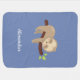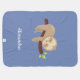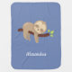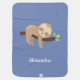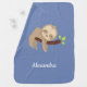 Having this cute sloth baby blanket in your child's nursery or wrapped around your little one will be sure to get a few smiles. With it's adorable little sloth hanging on a tree and customized with a name, on a blue background, it's sure to be a one of a kind!