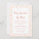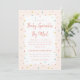 A whimsical baby sprinkle by mail invitation featuring rainbow sprinkles border on a blush pink background.