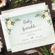 Invite your guests to a luxurious, baby sprinkle shower with this white rose floral bouquets on green watercolor background. Bouquets in each top corner. Templates created for you.