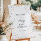 Welcome guests to your baby shower with this fun sign, featuring a border of colorful confetti. Add the guest of honor's name, shower date and custom welcome text using the fields provided.