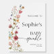 Watercolor Wildflower Baby Sprinkle Welcome sign. This sign is characterized by wildflowers with two modern high-class fonts that shape the trends of the present and future festive events.