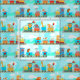 Baby Steam Engine Animals Train on Blue Fabric