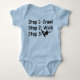 Fun baby steps shirt for families of wakeboarder. Step 1: Crawl, Step 2: walk, Step 3: wakeboard!