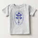 Blue seal with a solid sapling, printed on a grey or white baby or toddler tee in sizes 6 months through 24 months.