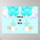Twin boys baby shower or gender reveal party decoration poster. Edit or add text to personalize.