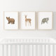 Add a finishing touch to your little one's woodland themed space with this set of three bear cub, fawn, and raccoon prints.