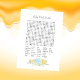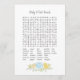 A fun game for the baby shower is the Baby word search. This game card features blue florals at the bottom. On the reverse is a boy teddy bear leaning on a honey barrel watching a honey bee with templates.