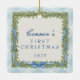 Baby's 1st Christmas blue gingham photo Ceramic Ornament