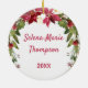 Cherish this moment forever with this baby's 1st Christmas Holly Wreath keepsake ceramic ornament. This pretty design features a Christmas holiday wreath with red poinsettias and green leaves. Personalize this memento with the name of your choice on the front and the text "FIRST CHRISTMAS" Put a full name and date on the back of the ornament. Replace the photo with your own baby's photo.