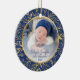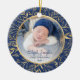 Babys 1st Christmas Photo Gold Foliage Navy Blue Ceramic Ornament