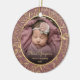 Celebrate baby's first Christmas with this beautiful keepsake ornament. Easily replace the sample image with your own favorite photo and customize it with baby's name in gold-colored script font and the year below. A black gradient screen helps make the text pop. The photo is set off by an elegant round frame decorated with hand-drawn gold faux foil foliage on a dusty rose background.