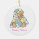 Adorable round ornament with lovely country primitive artwork of a baby under a patchwork quilt. Text on the front reads, Baby's First Christmas 2010, and on the back is the child's name. Personalize all the text for your child. Great Christmas tree ornament you and your child will love for years to come. Makes a sweet baby gift too.