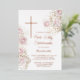 baby's breath and pink roses First Communion Foil Invitation