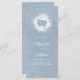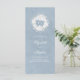 Dusty blue elegant vintage wedding programs with baby's breath wreath monogram