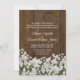 Plain white envelopes are included with paper invitations and will come to fit the invitation size you select. If you don’t need the envelopes, you may choose to not receive them by selecting the dropdown below "Envelopes" and choosing "None." If you’d like to have a design on your envelopes, you can browse all of these available envelopes to find the design that complements your Babys Breath Rustic Wedding Invitation.