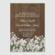 Lovely rustic chic themed wedding invitation magnet done in a dark wood look, with graphics of white baby's breath flowers, along the bottom. Personalize the white text to suit your needs. Great invitation magnet, for a few special people on your list. Matching regular invitation and products are available.