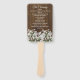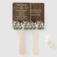 Rustic wedding themed program fan done in a dark wood look with graphics of white baby's breath flowers, along the bottom. Personalize the white text to read what you want.
