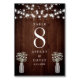 Baby's Breath String Lights Elegant Wedding Table Number. Floral baby's breath and rustic string lights set against an elegant romantic wood background. Perfect for a country or winter event. Personalize this custom design with your own details.