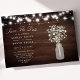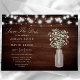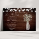 Announce your wedding in charming rustic style with this "Save The Date" card featuring delicate baby's breath in a mason jar against a wooden background, illuminated by string lights. Perfect for setting a warm and inviting tone for your special day, this card combines rustic elegance with a touch of romance. Customize with your event details to create a memorable and personalized announcement that reflects your unique celebration.