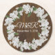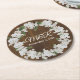 Rustic chic wedding pulp board paper coasters done in a brown wood look, with graphics of a white baby's breath floral wreath. Personalize the white text to suit your needs. Great for any wedding event and makes nice little favors for your guests.
