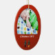 A great ornament for baby's first christmas holiday! A red oval with 2 very cute and whimsical christmas trees at the bottom and "christmas and the year" text. Customizable with your baby's photo.