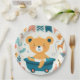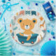 This adorable illustration captures the joy and innocence of a baby celebration. A cheerful bear, wearing only a diaper, sits happily in a bath tub, surrounded by festive decorations, animal friends, and sweet treats. The bright colors and playful characters create a whimsical and heartwarming scene perfect for welcoming a new little one.
