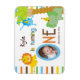 Upload your own photo and customize the text on this adorable Baby's First Birthday photo magnet. Brown, blue, yellow orange and green stripes are the background accent to this whimsical animal themed design. There is a monkey hanging from a tree, a lion and an elephant all wearing colorful polka dot birthday hats. Text reads: BABYNAME is turning ONE". The "O" in one serves as the frame for your own baby's photo. You can add the birthday to this design with the remaining available customizable text or if you prefer, delete the text completely.