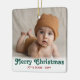 Celebrate your baby's first holiday magic with this custom 2-photo birth stats ceramic ornament, perfect for new parents like you and your partner. Capture those precious moments with photos of your little one on both sides, along with birth details, names, and the year for a heartfelt family keepsake. Click on personalize and start editing to add your baby's photos, stats, and special messages—ideal for husbands and wives cherishing their newest joy. The warm beige tones, cozy baby imagery, and festive green script create a modern minimalist vibe that adds charm to your Christmas tree. This unique ornament is a timeless gift that marks the start of holiday traditions together as a couple and parents.