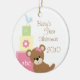 Baby's First Christmas Bear Blocks Circle Ornament