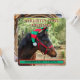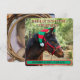 Horse colt wearing a red and green elf hat adorns this Baby's First Christmas announcement with birthdate and stats. This double sided card has space for a photo of your new baby cowgirl or cowboy, surrounded by a lariat. Be sure to customize text with your little one's information.