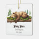 Commemorate the most precious of milestones with this beautiful woodland bear ceramic keepsake. Featuring a sweet, sleeping bear cub, this design creates a serene feel perfect for a newborn's first festive season. Easily add your little one's name, birth date, and weight in the template fields to create a truly special memento. This timeless ornament will be a cherished family keepsake for years to come, and looks just as lovely displayed year-round in a woodland-themed nursery.