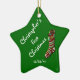 A colorful red, white and green Christmas stocking design, filled with sweet treats for your baby's first Christmas. Baby's full name and date of birth are on the back. Customize to change the information, colors of the text and background color to your liking. This design is great for all ages as a keepsake for anyone who has never had a personalized ornament to mark the year of their first Christmas.
